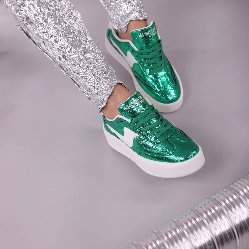 Turn up the heat with the Hamster London Metallic Hot Green Party Sneakers – bold, vibrant, and built to keep you moving in style.
