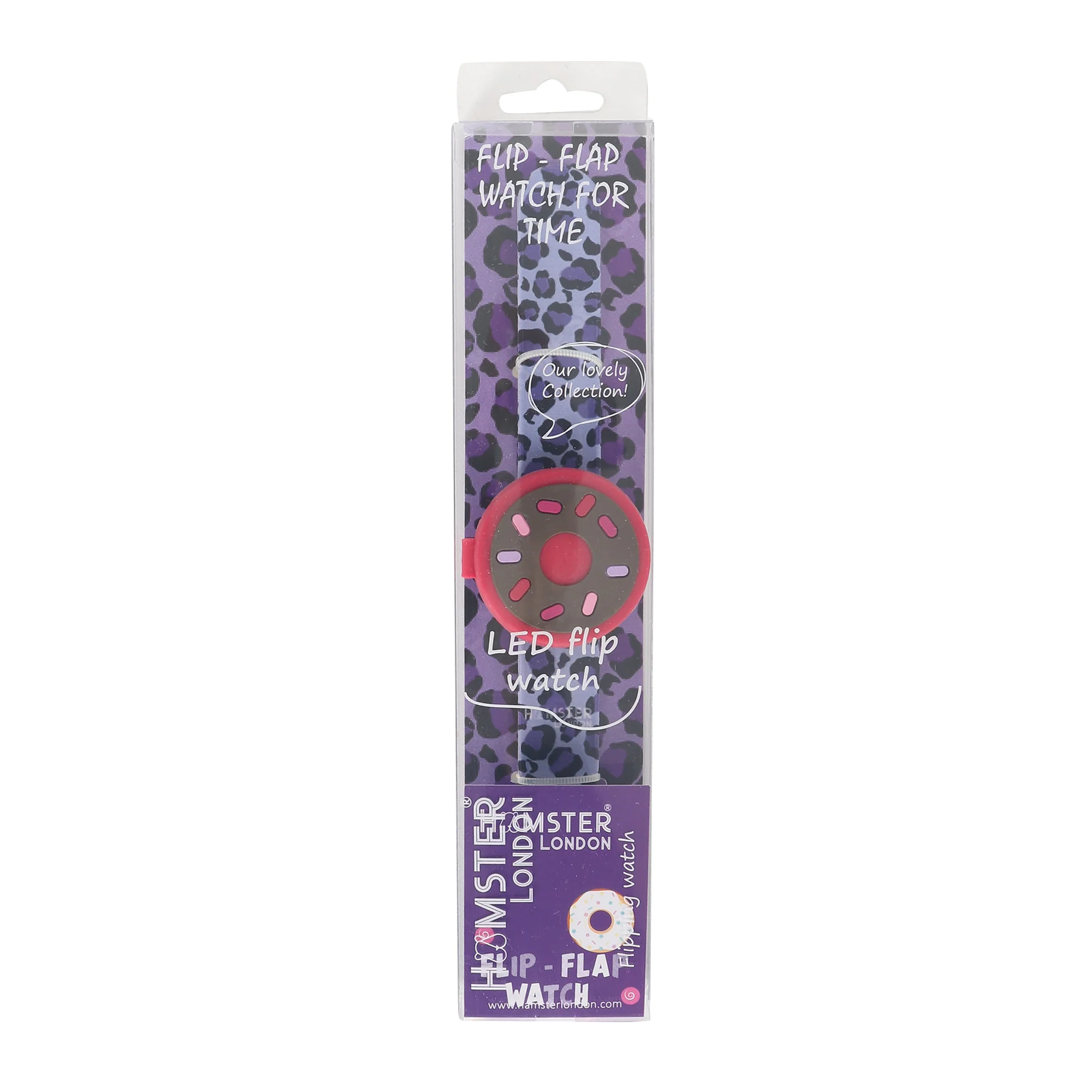 Hamster London Printed Slap Band Flip Wrist Watch Donut Purple